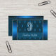 Chic Teal Blue with Monogram Pattern Professional Business Card