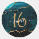 Chic Teal Gold Glitter Agate Custom Monogram Classic Round Sticker