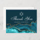 Chic teal and gold agate decorates the side of this modern Bat Mitzvah thank you postcard. Mazel Tov! Customize with your name under the Star of David. Perfect cards for a chic, stylish Jewish family celebrating a girl being called to the Torah.
