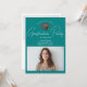 This modern teal custom graduation party invitation features your high school or college name for the class of 2025 above your favourite senior portrait photo. Customize with your graduating year under the chic handwritten script and grey grad cap for great personalized graduate celebration cards. Add a 2nd picture on the back along with personal details.
