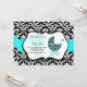 Chic Teal Polka Dot Damask Baby Shower Invite