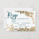 Chic teal script Floral gold leaf rsvp wedding Invitation