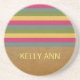 Chic Textured Stripes Customizable Coaster. This design features textured stripes on a distressed brown paper background. This grungy yet vibrantly coloured coaster may be customized with a name or other personalized text. Never be unsure whose drink is whose again!