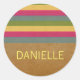 Chic Textured Stripes Customizable Stickers. This design features textured stripes on a distressed brown paper background. These grungy yet vibrantly coloured stickers may be customized with a name or other personalized text.