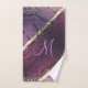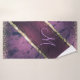 On this stylish bath towel set is a purple gypsy scarf with gold faux coins and beads where you can customize it with a letter along with a purple tie dye pattern and on the bottom and top is gold glitter for extra glam. Classy boho chic vibes.