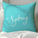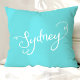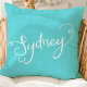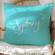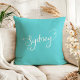 Chic Turquoise & White Sydney Typography Throw Pillow