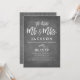 Chic and modern engagement party invitation for the future Mr. and Mrs. on a chalkboard background. Select a die-cut shape or textured paper for an extra lux invitation.