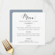 Chic typography wedding menu card with hand drawn script and decorative accents. Backing colour shown in dusty blue can be customized.