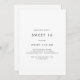 This chic typography sweet 16 birthday invitation is perfect for a modern 16th birthday party. The simple design features classic minimalist black and white typography with a rustic boho feel. Customizable in any colour. Keep the design minimal and elegant, as is, or personalize it by adding your own graphics and artwork.