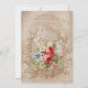 Elegant vintage-inspired composition featuring centre bouquet of pink roses with blue, white and yellow daisies with ornate engraved oval floral frame and French typography on distressed buff background.