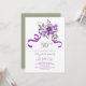 Honor a special woman with this elegant and feminine Birthday party invitation. This elegant design features watercolor violet flower bouquet with pastel green leaves and purple ribbons. Each text is customizable for your needs.