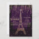 This elegant and modern wedding invitation is perfect for the stylish and trendy couple. It depicts a glamourous faux gold glitter Paris eiffel tower on violet purple and wine coloured watercolor scenery background with bright shiny glam stars and glimmering glitter strands . On the back is fancy popular glitter Paris eiffel tower on trendy purple watercolor with stars . It's minimal, contemporary , chic, artsy, and pretty!