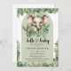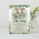 A cute watercolor elephant surrounded by tropical greenery foliage leaves can create a charming and stylish theme for a boy baby shower invitation. The modern script adds a touch of elegance and sophistication to the design, making it a perfect choice for a special celebration. The combination of the adorable elephant, lush greenery, and elegant script creates a unique and memorable invitation that is sure to impress guests and set the tone for a lovely event.