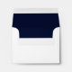 Chic wedding envelope is completed in crisp white on the outside and dark navy blue on the inside! This solid colour envelope has been designed to coordinate our elegant style items that are labelled as Elegant Dark Blue Border. Use the template to customize with your return address in the coordinating design. E-mail invitationsuites@gmail.com with questions or custom requests.
