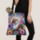 Chic Whimsical Cat Flower Garden Monogram Tote Bag