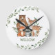 Chic Whimsical Woodland Animals Bear Deer Fox Owl Round Clock