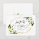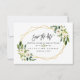 Unique and elegant card design featuring gorgeous white watercolour roses, peonies bouquets, a faux gold frame, modern handwriting "save the date", on a white background. Use Customize tool to add your info, change fonts, background colour. For matching items, please, visit my White Floral Gold Frame Collection.