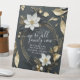 Modern Vintage Elegant Open Seating Wedding Pedestal Sign Template - Elegant Black White and Gold Floral Wreath.