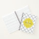 A chic white and grey Moroccan quatrefoil pattern standard size notebook with a yellow badge you can personalize by adding your name and monogram initial to. This is part of the Coconut Milk and Meadowlark Spring Quatrefoil Collection.