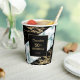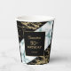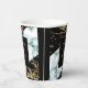 A modern, stylish and glamourous birthday paper cup. Black and shiny gold foil paint marble structure with white marble stone background. Personalize and add your party details. Make your milestone birthday an extraordinary event!