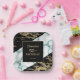 A modern, stylish and glamourous birthday paper plate. Black and shiny gold foil paint marble structure with white marble stone background. Personalize and add your party details. Make your milestone birthday an extraordinary event!