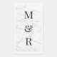 Chic white marble stone print custom monogram Paper Guest Towels. Make your own personalized party napkins. Add your own text and background colour. Great for weddings, Birthdays, baby shower, dinner party, BBQ and more. Fancy pattern with name initials. Disposable narrow folded napkins to dry hands in the powder room and more. Vertical or horizontal text options.