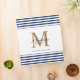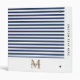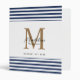 Chic White Navy Blue Stripes Script Gold Monogram Binder