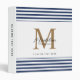 Chic White Navy Blue Stripes Script Gold Monogram 3 ring binder