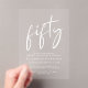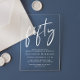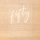 Elevate your 50th birthday party with this clear acrylic invitation featuring "fifty" in a chic large white script, your name in elegant white serif typography and the party details in simple, modern lettering,