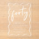 Elevate your 40th birthday party with this clear acrylic invitation featuring a trendy wavy white border, "forty" in a chic large white script, your name in elegant white serif typography and the party details in simple, modern lettering,