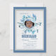 A chic, watercolor, winter invitation featuring frosted pine branches and cones in shades of blue. The round photo window is framed and ready to hold your child's photo.