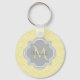 A chic yellow art deco arched scallop pattern basic keychain with a soft grey quatrefoil badge you can personalize by easily adding your own monogram and name. This is part of the Meadowlark Scallops Harbour Mist Monogram Spring Collection.