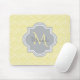 A chic yellow art deco arched scallop pattern mousepad with a soft grey quatrefoil badge you can personalize by easily adding your own monogram and name. This is part of the Meadowlark Scallops Harbour Mist Monogram Spring Collection.