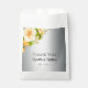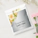 This beautiful wedding favour bag is the perfect way to thank your guests for celebrating your special day. The bag features a stunning yellow rose bouquet on a metallic silver background, with the names of the bride and groom and wedding date personalized to suit. The bag is made of sturdy paper and it is easy to fill with your favourite wedding favours. This favour bag is sure to be a keepsake that your guests will cherish for years to come. It's the perfect way to add a touch of elegance and personalization to your wedding day.
