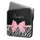 Chic Zebra Print Soft Girly Light Pink Ribbon Laptop Sleeve