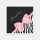 Get your fashionista on with these chic and stylish animal print napkins. This fashion accessory with a trendy black and white zebra print and a soft feminine light pink ribbon tied into a cute girly bow can be personalized by adding the name of your teen girl. Flat printed image, not actual ribbon. ©OhSoGirly