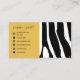 Carte De Visite Chic Zebra Stripes & Gold Modern Professional