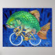 Oil on canvas. Carp on a bicycle.