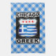 Chicago Greek design, in the style of a cool American road route sign. The text Chicago Greek is along the top and bottom, with the flag of the City of Chicago and the flag of Greece inside the route sign. Great for Chicagoans of Greek descent, and for ex-pats in the Windy City.
