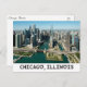 This fun travel post card features an aerial image of the Chicago, Illinois skyline at sunset. Chicago is nicknamed the windy city and is the third largest city in the United States.