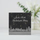 Customizable Invitations and accessories with a stylized black & white etched look view of the Chicago Illinois skyline. They also feature a black starry night background with gold and white stars.