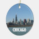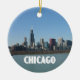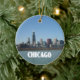Chicago Illinois skyline and lake view commemorative ornament to celebrate happy memories of Chicago. Photo of the city skyline and the lake along with the word Chicago in fun typography. Choose your ornament shape.