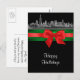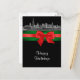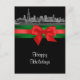 Chicago Etched Look 01 Red & Green Ribbon Invitation Suite - Christmas Card / Winter Holiday Postcard Black Background