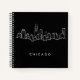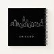 This design features a hand drawn sketch of the city of Chicago skyline on a dark background.