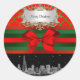 Chicago Skyline, Red Green Quatrefoil Xmas Classic Round Sticker