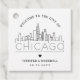 Enhance your wedding welcome packages or event party favours with a custom set of welcome gift favour tags! These elegant yet minimal-style favour tags are tailored for a wedding taking place in the wonderful city of Chicago, Illinois. They feature a modern deco skyline with the name of the city integrated underneath. All elements of the design including the text elements are unlocked and customizable by using the edit function.