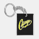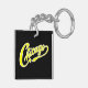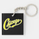 Chicago Text in Yellow Script BLK Keychain