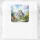 Nice sticker with Chichen Itza, Mexico. Beautiful painted El Castillo Pyramid, ruins of Maya Empire.
