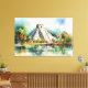 Canvas with Chichen Itza, Mexico. Beautiful painted El Castillo Pyramid, ruins of Maya Empire.