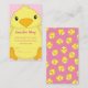 Cute chick baby shower design is great for a spring baby shower with a farm theme! The cute cartoon chicken baby is great for a baby girl on the way with pink background!